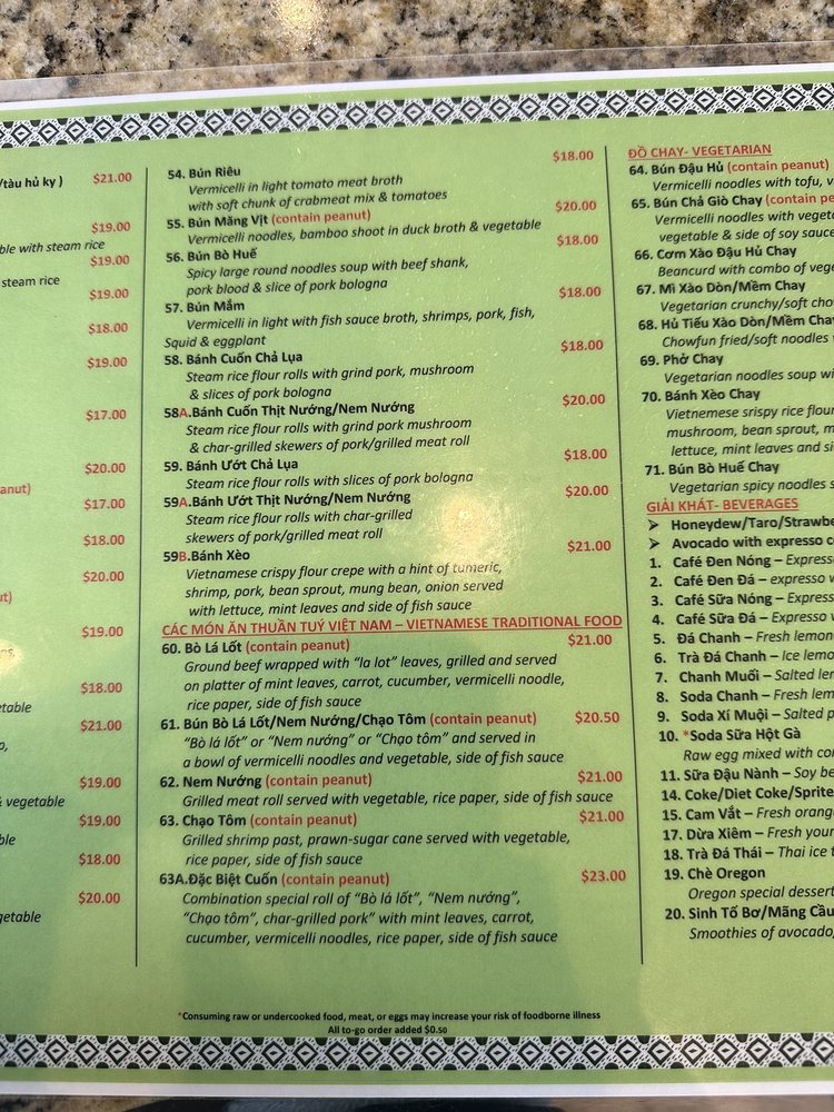 Located in Beaverton, Pho Oregon offers a diverse Vietnamese menu with options for vegans and vegetarians. Customers rave about the authentic flavors and generous portions, making it a local favorite. The #1 Pho Oregon special is a standout dish, featuring a rich and flavorful broth packed with meat. The casual setting and friendly service add to the cozy dining experience, reminiscent of a family-owned restaurant. Despite some minor complaints about parking, the overall atmosphere and quality of the food make Pho Oregon a top choice for pho lovers in the area. With a variety of traditional dishes like Pho Dac Biet and Banh Xeo, there's something for everyone to enjoy at this bustling restaurant. If you're looking for a satisfying and delicious Vietnamese meal, Pho Oregon - Beaverton is a must-visit destination.